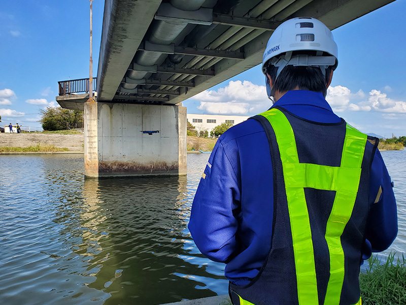 インフラDX推進担当では、社会インフラのメンテナンスを担う建設コンサルタント会社に対し、ドローンやボート型ドローン、点検業務の効率化をデジタル支援するアプリケーションなどを組み合わせて、橋梁点検における新技術支援を行っています。お客様の課題に応じた最適なソリューションを提案し、点検業務の効率化と社会インフラの高度化に貢献しています。