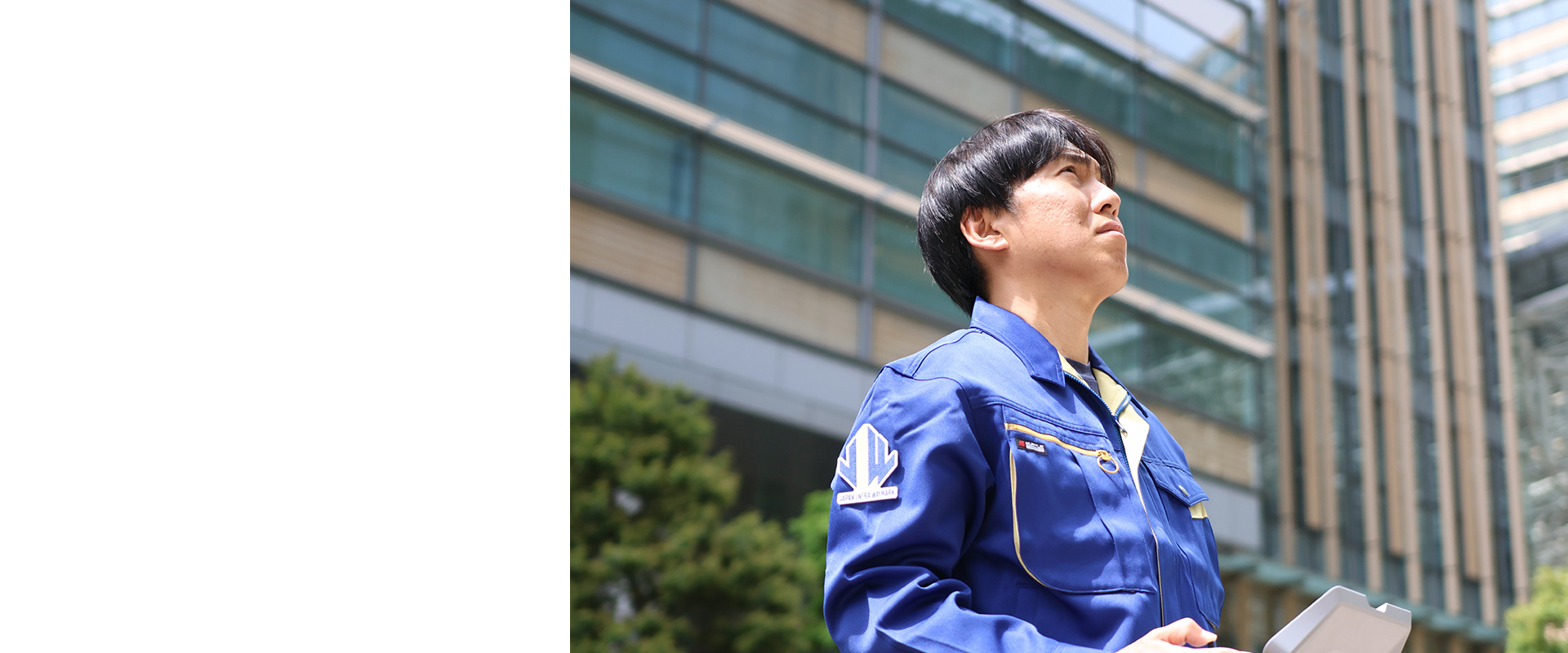 | 現在の仕事 | NTTの通信設備を中心に、ドローンを使った点検業務を担当しています。実際に現地でドローンを飛ばすだけでなく、撮影した映像や画像をもとに設備の状態を分析し、必要に応じて補修の提案やメンテナンス方法の検討、報告書の作成まで行っています。 日々の点検を通じて、いかに精度を高め、効率よく作業できるかも大事なポイントなので、新しい技術や機器があれば、自ら検証して業務に取り入れることも意識しています。また、社内外への技術共有や新人教育も担当していて、チーム全体のスキル向上にも取り組んでいます。点検の品質をより高めて、お客様に信頼していただける仕事をしていきたいですね。 |