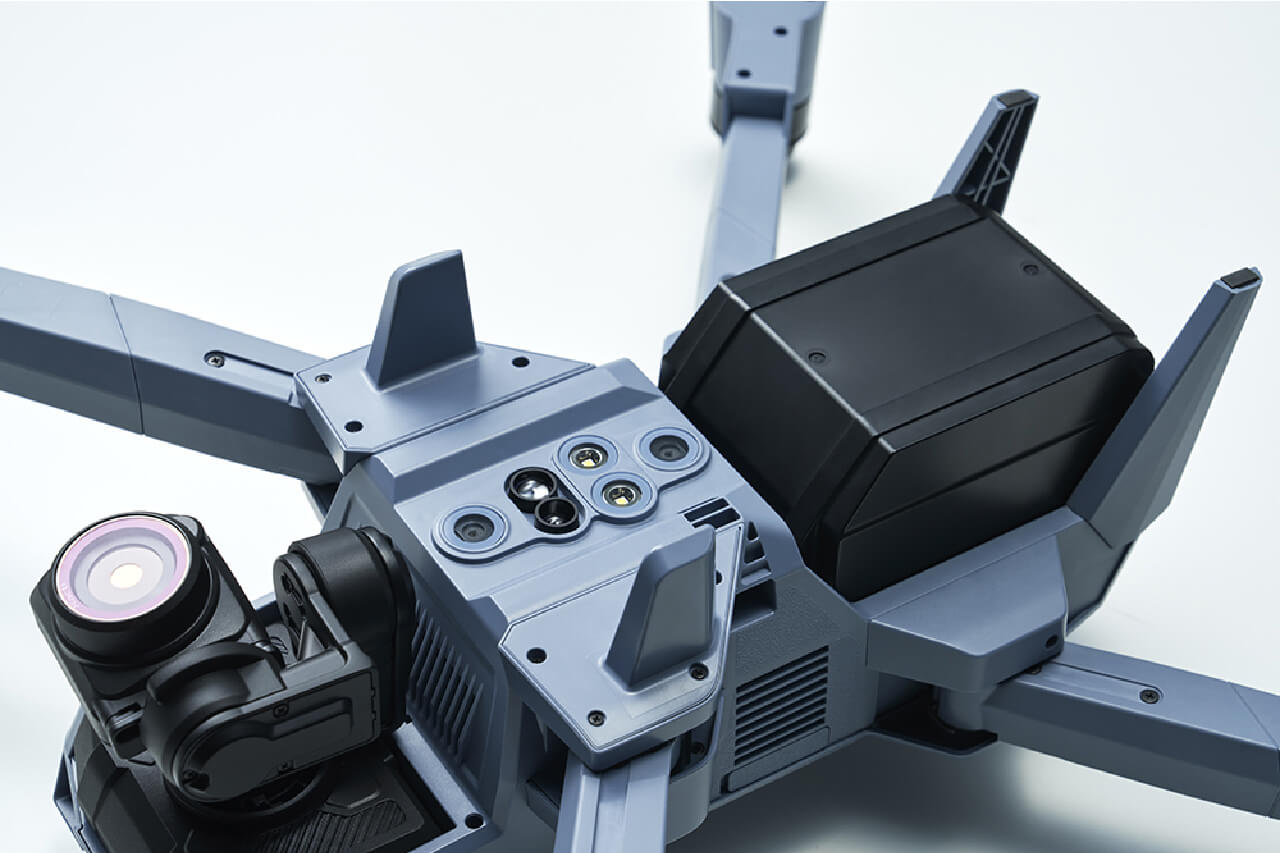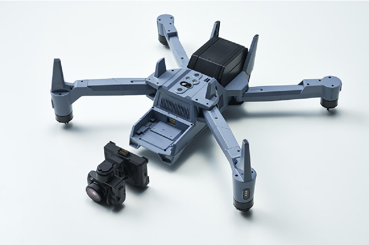 小型空撮ドローンでは初となるカメラのワンタッチ切り替え方式を採用することで、幅広いカメラの選択肢を提供することが可能です。カメラは標準カメラの他、赤外線カメラ+可視カメラ、マルチスペクトルカメラ、光学ズームカメラとの交換が可能です。