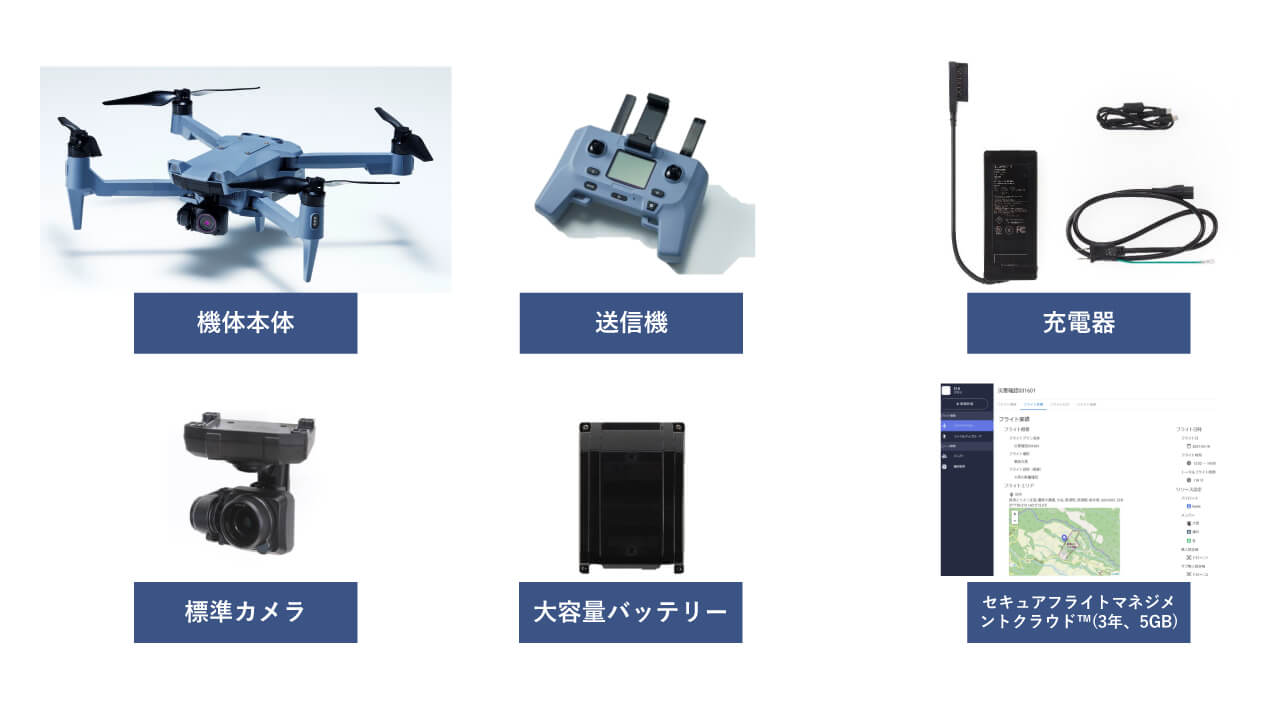 | 付属品 | 標準送信機 / バッテリー(94Wh) / 標準充電器 / セキュアフライトマネジメントクラウド※(3年分、5GB) |